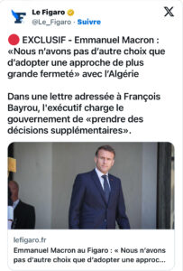 Ce n’est pas tant l’Algérie en tant que nation qui est visée, que son régime, figé dans une posture d’opposition systématique, selon l’analyse de l’Élysée. Le ton employé dans la lettre est révélateur , « Il aurait pu en être autrement. Désormais, nous n’avons pas d’autre choix ». Comme si la France était contrainte, par devoir de souveraineté, de faire le ménage dans ses illusions.