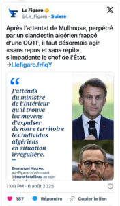 Ce changement de cap ne s’arrête pas aux portes de l’Élysée. Macron instruit l’ensemble du gouvernement , le Quai d’Orsay doit notifier la suspension de l’accord de 2013, l’Intérieur doit activer le levier CIAI (loi immigration de 2024), et les services consulaires doivent redevenir des bastions de contrôle, non des comptoirs de routine. On ne parle plus de visas, mais de leviers de pression.
