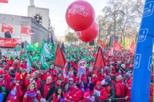 La manifestation a rassemblé des travailleurs issus de nombreux secteurs clés de l’économie : chimie, métallurgie, soins de santé, transport et logistique, enseignement, culture ou encore services publics. À leurs côtés, une large partie de la société civile était également représentée : organisations féministes, mouvements de jeunesse, militants pacifistes, associations environnementales et collectifs citoyens.